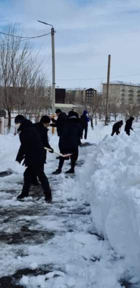 Жаңатас көпсалалы колледжінде құрылған "Мейірімді жүрек" еріктілер клубының студенттері мен колледж қызметкерлері колледж ғимаратының айналасын қардан тазарту жұмыстарын жүргізді.