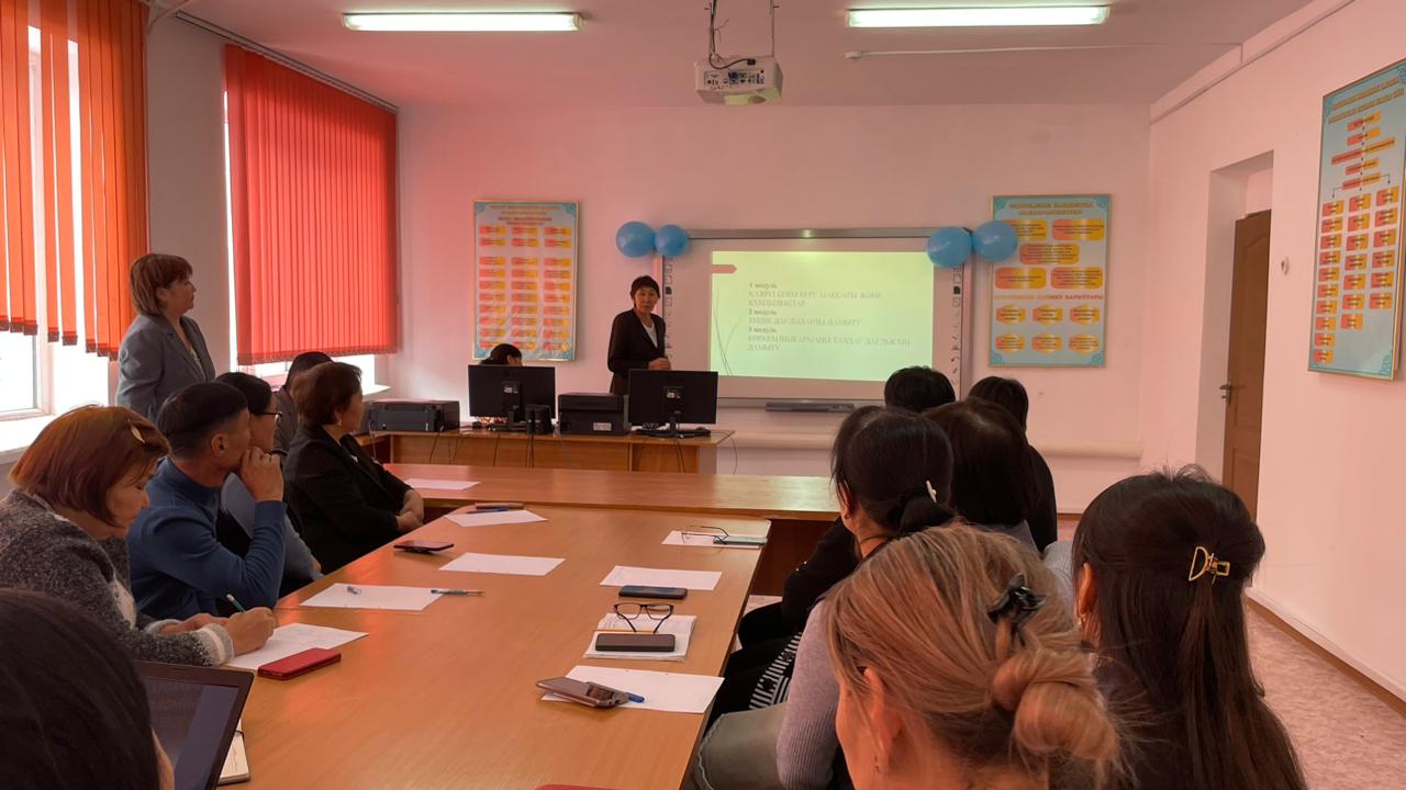 «Назарбаев Зияткерлік мектептері» ДББҰ біліктілік курстарынан өткен жалпы пән оқытушылары Р.Рахимова, Э.Сулейменова, К.Абдировалар «Колледжде қазақ тілі және қазақ әдебиетін, математика пәнің оқыту: басымдықтар және жетілдіру стратегиялары» тақырыбында семинар өтті. Семинарда әрбір модульдер бойынша жеке-жеке тоқталып, сабақ жоспарының жасалу жолдарының құрылымы, PISA зерттеуіндегі креативті ойлауды бағалау моделі: тақырыптық және құзыреттілік салалары, математика,қазақ тілі мен әдебиеті сабағында білім алушылардың функционалдық сауаттылығын дамыту тапсырмалары туралы мәліметтер беріп өтті.