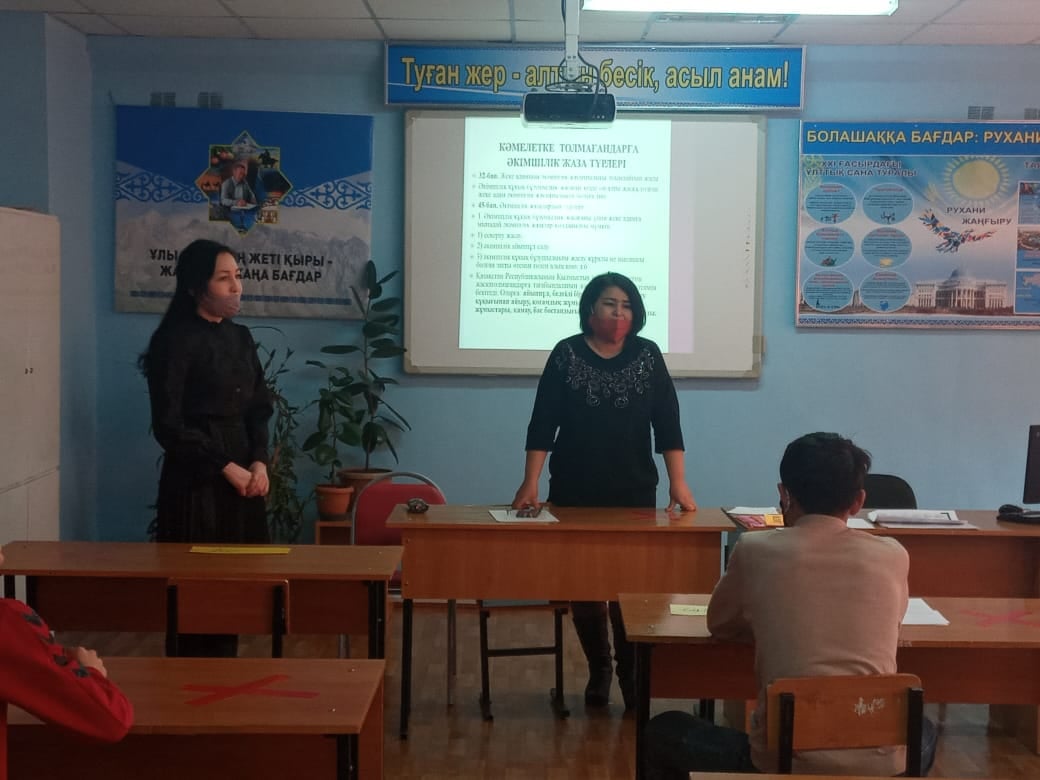 08.02.2021ж күні колледж психологы А.Есболаева топ студенттерімен карантиндік жағдайға байланысты сақтық шараларды сақтай отырып, оқу орнында қауіпсіз психологиялық кеңістікті қалыптастыру , балалар арасында зорлық-зомбылықтың алдын алу, туындаған проблемалардың жай- күйі мен оған тап болғандарды психологиялық қолдау, бірін-бірі қудалауға, кемсітуге жол берілмеуіне психологиялық профилактикалық алдын алу жұмыстарын жүргізе отырып, студенттердің құқықтық сауаттылығын артттыру мақсатында « Буллинг және кибербуллинг, оның алдын алу» тақырыбында тренинг өткізіп, адам құқықтары Ата Заңымыз – Қазақстан Республикасының Конституциясында көрініс тапқан баптар мен бөлімдермен таныстырып өтті. Тренингке қатысқан директордың тәрбие ісі жөніндегі орынбасары А.Естемесова әрбір азаматты буллингтің құрбаны болмауына шақырып,ақыл –кеңесімен бөлісті.
