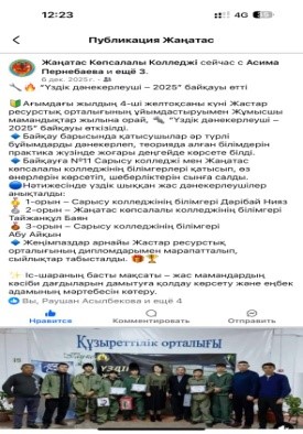 2025 жылдың 4-ші желтоқсаны күні Жастар ресурстық орталығының ұйымдастыруымен Жұмысшы мамандықтар жылына орай, “Үздік дәнекерлеуші – 2025” байқауы өткізілді. Іс-шараның басты мақсаты – жас мамандардың кәсіби дағдыларын дамытуға қолдау көрсету және еңбек адамының мәртебесін көтеру.Байқау барысында қатысушылар әр түрлі бұйымдарды дәнекерлеп, теорияда алған білімдерін практика жүзінде жоғары деңгейде көрсете білді. Байқауға №11 Сарысу колледжі мен Жаңатас көпсалалы колледжінің білімгерлері қатысып, өз өнерлерін көрсетіп, шеберліктерін сынға салды. Нәтижесінде үздік шыққан жас дәнекерлеушілер анықталды: 1-орын – Сарысу колледжінің білімгері Дәрібай Нияз. 2-орын – Жаңатас көпсалалы колледжінің білімгері Тайжанқұл Баян.3-орын – Сарысу колледжінің білімгері Абу Айқын. Жеңімпаздар арнайы Жастар ресурстық орталығының дипломдарымен марапатталып, сыйлықтар табысталды.