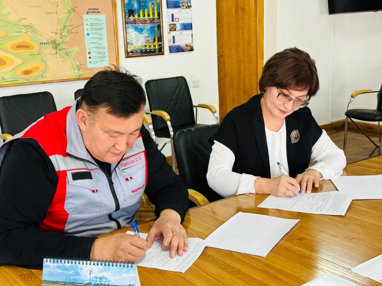 Жамбыл облысы әкімдігінің білім басқармасы « Жаңатас көпсалалы колледжі » МКҚК және ЖШС « ЕвроХим-Удобрения» арасында жасалған өңірге қажетті мамандарды даярлау бойынша корпоративтік басқару (қамқорлық) туралы 3 жақты МЕМОРАНДУМ жасалған.