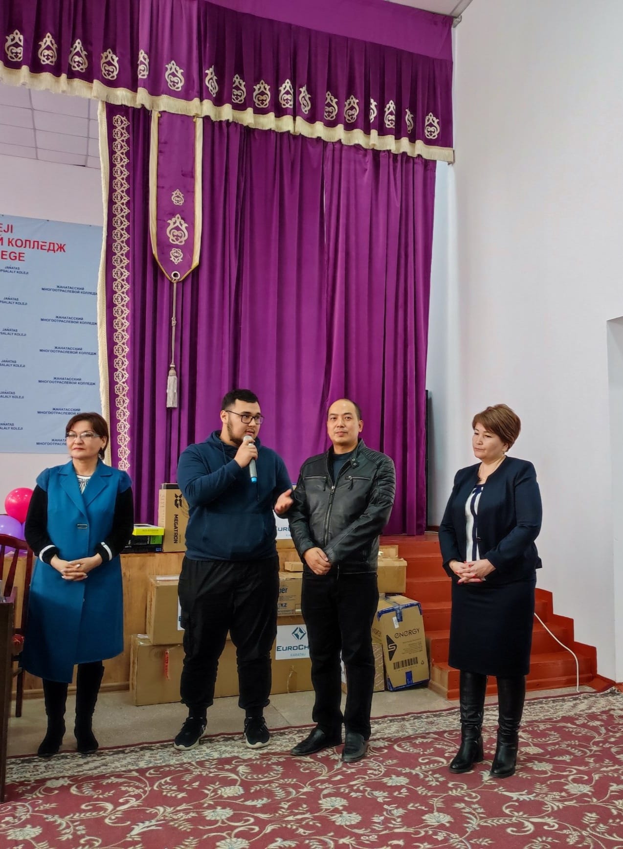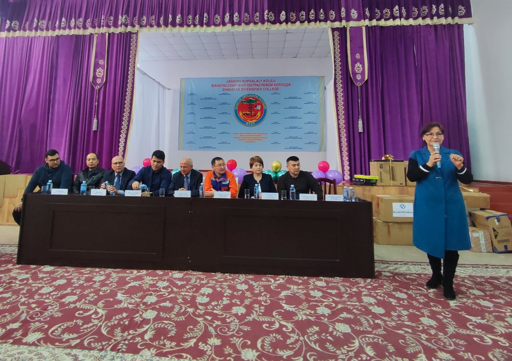 «ЕвроХим - Удобрения» ЖШС-нің мамандығы бойынша 07110400 «Зертханалық технология» , біліктілігі 3W07110402 «Химиялық талдау зертханашысы» Жаңатас көпсалалы колледжінің білім алып жатқан білімгерлерге лабораториялық жұмыстар жасау үшін жағдай жасап көмек реттінде төменде көрсетілген зертханалық ыдыстармен приборларды алып келіп сыйға тарту етті .
